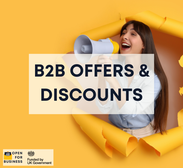 At Open for Business, weâre proud to showcase exclusive discounts and special offers from a range of brilliant local businesses providing essential services to help your company grow. From marketing and design to professional services and more, our partners are here to support your success. Want to feature your own business and promote your offers to the local network? Simply complete our quick online enquiry form to get started and join the list!